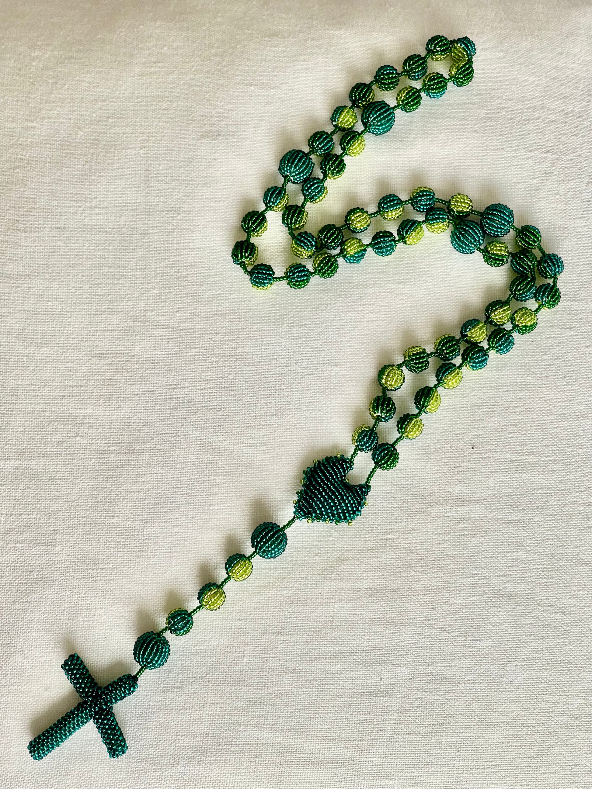 Tejido artesanalmente con mostacillas seleccionadas, una a una.