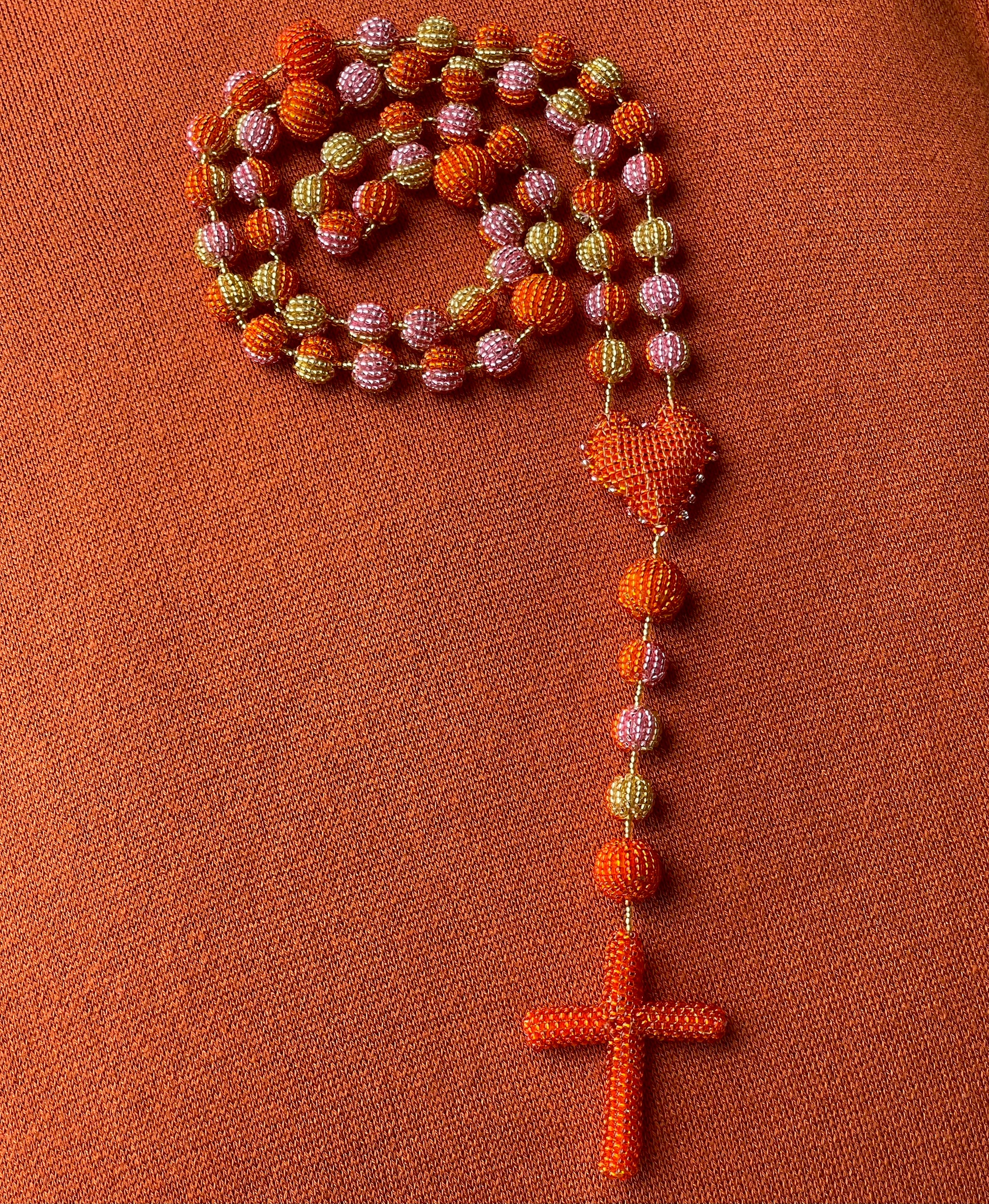 Tejido artesanalmente con mostacillas seleccionadas, una a una.