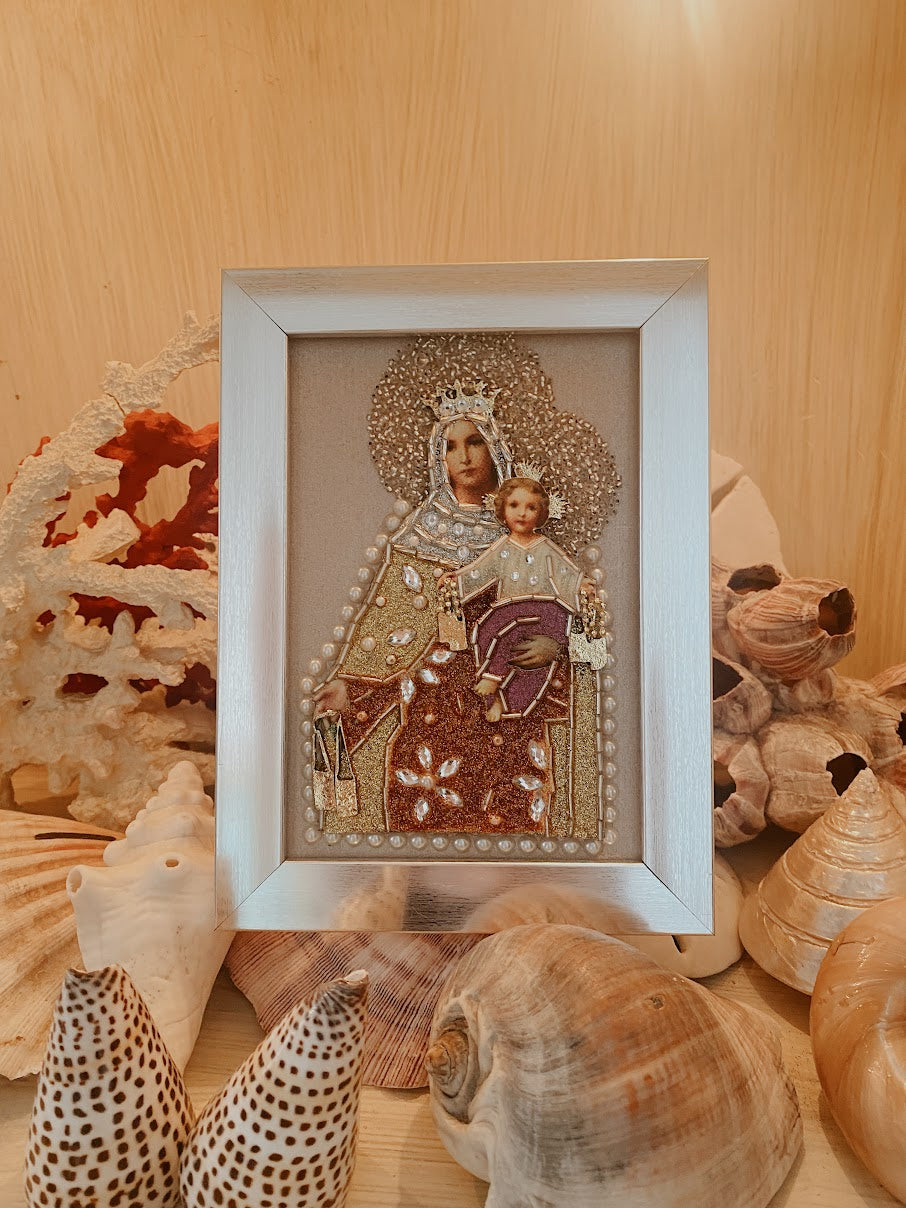 Incluye marco, estilo portarretrato o para colgar dependiendo del tamaño, fabricado en madera artesanalmente.